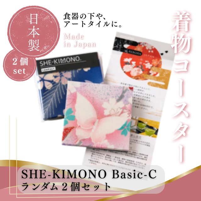 【着物から生まれたコースター】SHE-KIMONO BASIC-C ランダム2個セット/おしゃれ/シンプル/和モダン/和雑貨/インテリア/ギフト
