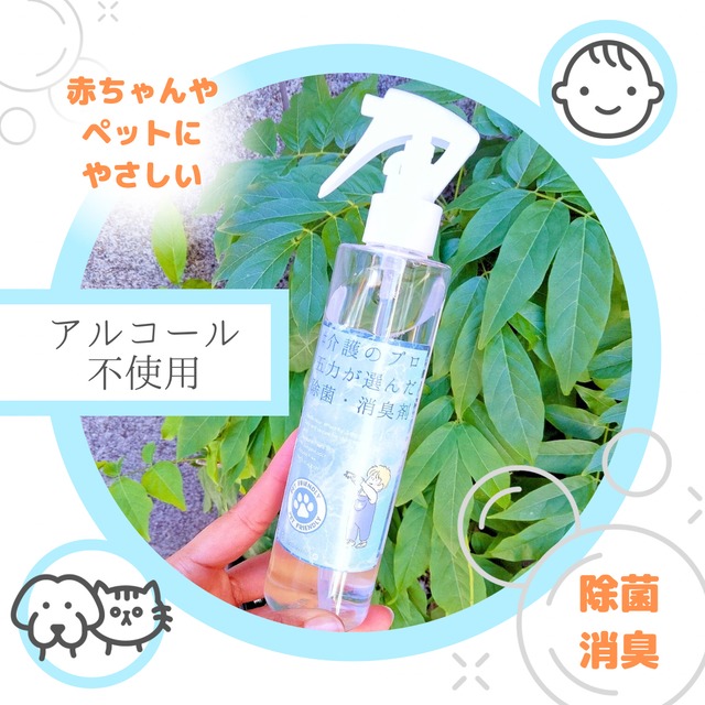 介護のプロ五力が選んだ、除菌・消臭剤です。 アルコール不使用のため、 小さなお子さんやペットのいらっしゃるご家庭でも安心してお使いいただけます。 ノロウイルスやコロナにも効くほどの除菌力を持ちますが、 医療用の除菌剤を使った安全性に注力した逸品です。 / こんな特徴があります! \ ・抗菌効果72時間以上 ・ノロウィルスにも効果あり ・アンモニア96%消臭 ・無着色なので衣服にしみない ・保存が5年可能 ・アルコール不使用、引火性なし ・ペット、幼児にも安心 ・無臭 【配合成分】 ポリヘキサメチレンビグアナイド 塩化ベンザルコニウム オバゾリン516S 精製水 【内容量】200ml